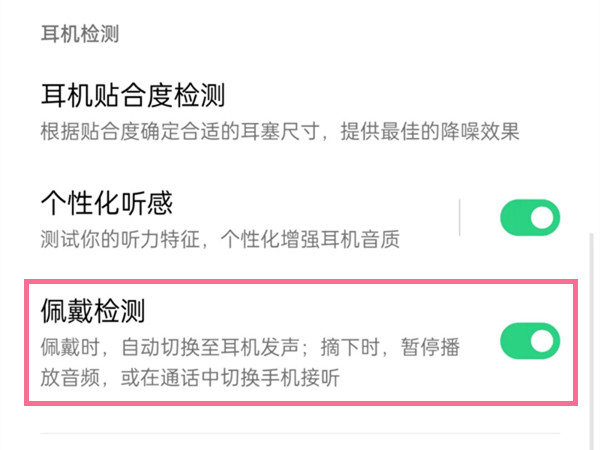 3、打开【佩戴检测】右侧的开关。