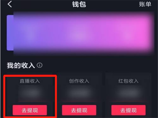 2、进入钱包界面后,找到直播收入进入即可查看直播收益。