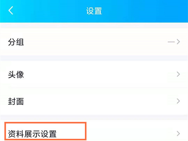 3、在设置中点击资料展示设置。
