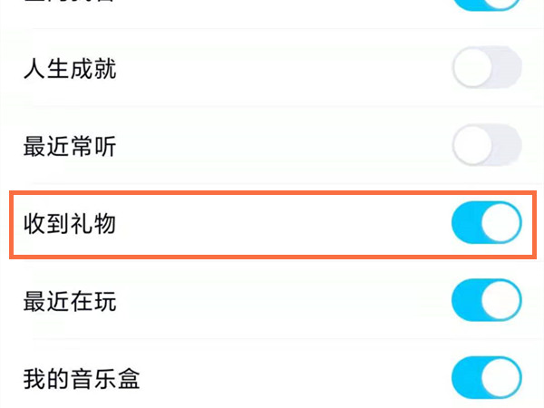 4、将收到礼物的开关开启即可。