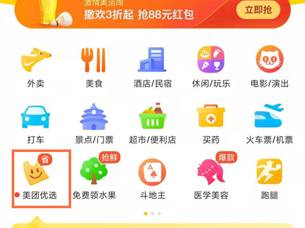 1、打开美团app,在首页点击美团优选。