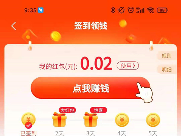 2、在我的页面点击签到领钱。