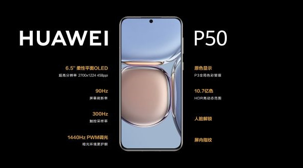 华为p50屏幕多大尺寸?华为p50屏幕为6.5 英寸,采用的是中置挖孔OLED屏幕,2700x1224 像素的分辨率、刷新率为90Hz。