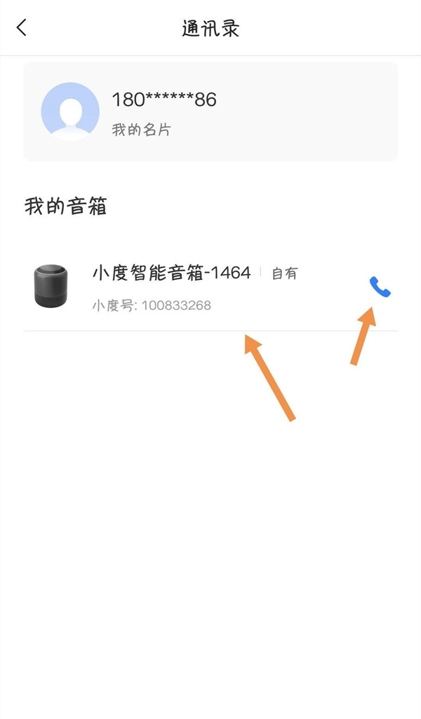 2、在通讯录页面,点击电话图标就可以与音箱进行通话了。
