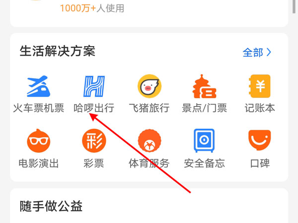 1、打开支付宝,在首页小程序栏点击更多,点击哈啰出行。