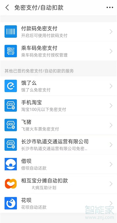 3、点击支付设置里的免密支付/自动扣款。