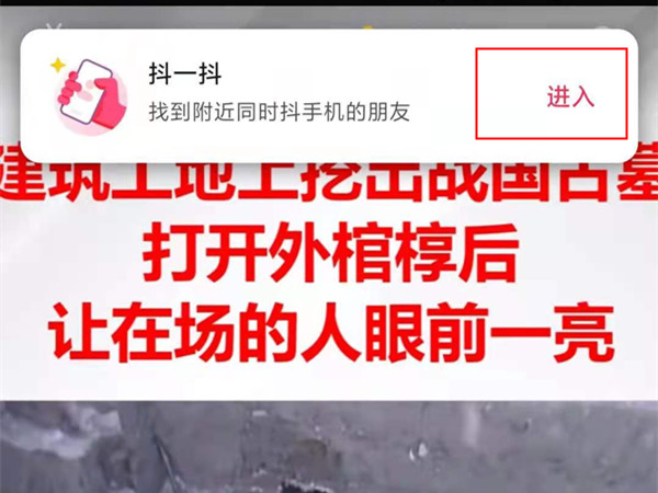 3、用力晃动手机,在顶端点击【抖一抖】右侧的进入。
