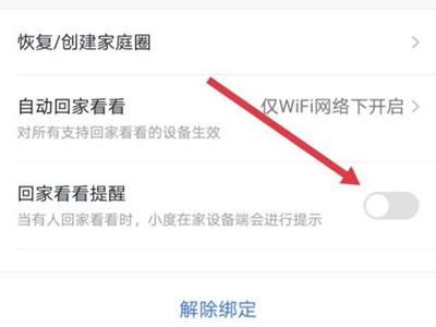 3、将“回家看看提示”右侧的开关关闭即可。