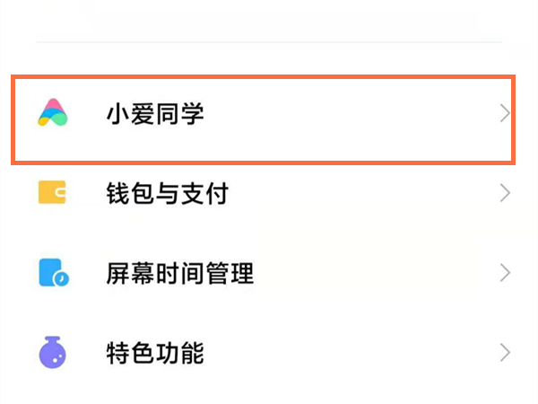 1、打开手机设置,点击“小爱同学”。