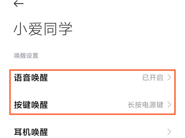 2、将“语音唤醒”或者“按键唤醒”的开关开启即可。