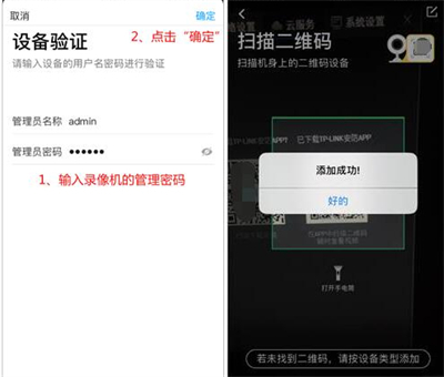 2、输入录像机的管理密码,并点击【确定】即可添加成功。