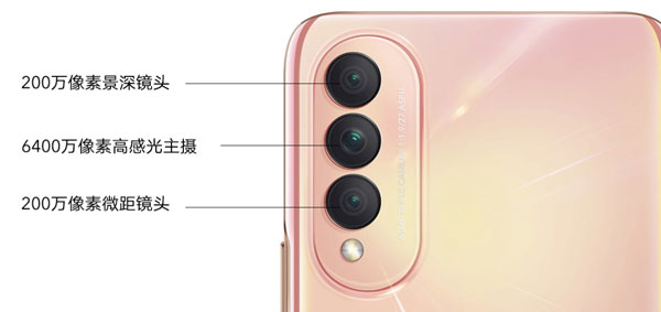 耀 X20SE机身厚度为8.4mm,重量只有179g,是较为轻薄的。在荣耀 X20 SE 的背面,相机模组其实是比较显眼的,它放置在了左上角的位置,竖向排列的三颗镜头颇具美感。这次的三颗摄像头分别为 6400 万像素主摄、200 万像素微距镜头、200 万像素景深镜头,支持超级夜景、AI 智能模式、前后双景录像、EIS 防抖等技术,可玩性是比较高的,对于学生党来说,值得一试。
