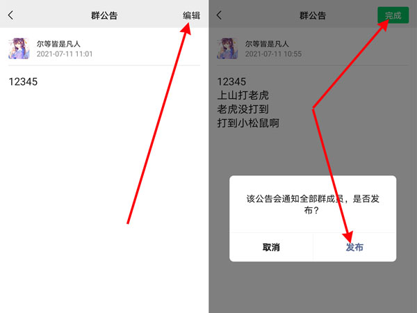 微信群公告不能撤回,发错的群公告只能进入群公告重新编辑。重新编辑群公告具体操作步骤如下: