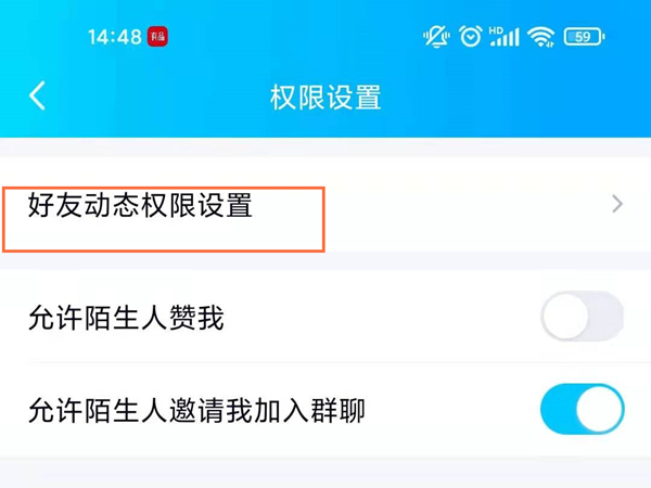 2、在隐私中点击权限设置,再点击好友动态权限设置。