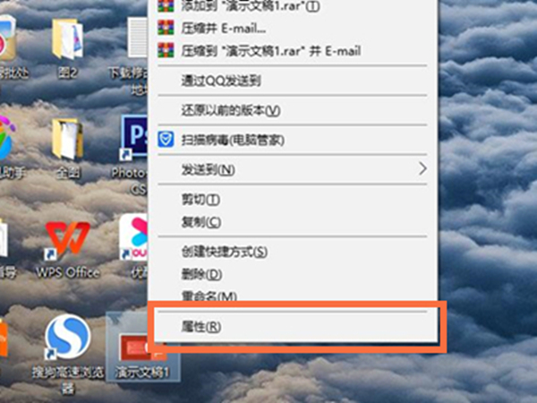 1、在电脑桌面找到并右击PPT,点击属性。