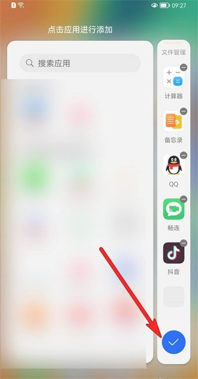 2、点击下方的+号,选择点击添加的应用,然后点击勾即可保存设置。