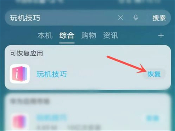 3、在搜索结果中找到“玩机技巧”,点击右侧的【恢复】即可。