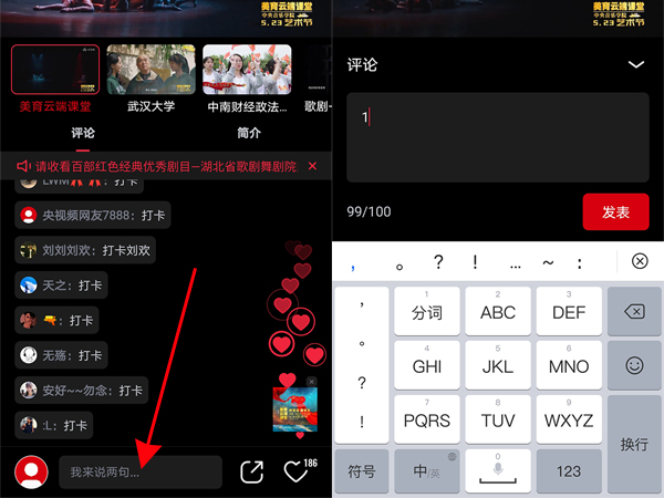 央视频不能开弹幕,但是在央视频看直播可以进行评论。央视频看直播发评论的具体步骤如下: