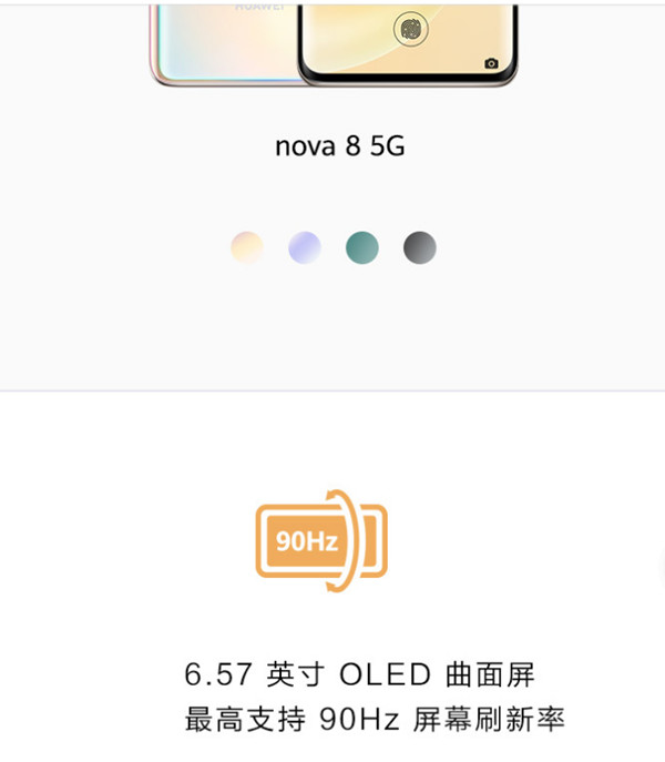 华为nova8是曲面屏吗?华为nova8是曲面屏,它采用6.57英寸OLED曲面屏,90 Hz 屏幕刷新率,240 Hz触控采样率高达,分辨率FHD + 2340 x 1080 像素,这块屏像素密度高达 392 PPI,拥有 10 bit 的色深,重量约 169 克,长度160.12 mm、宽度74.1 mm、厚度7.64 mm,拥有8号色,普罗旺斯,绮境森林,亮黑色四种配色。