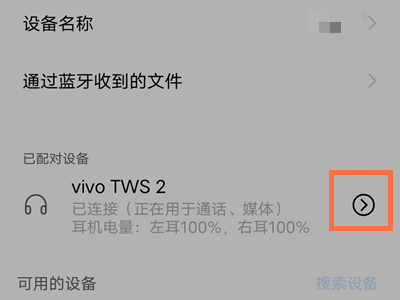 1、打开手机的设置,点击蓝牙,再点击vivo TWS 2最右侧的进入的图标。