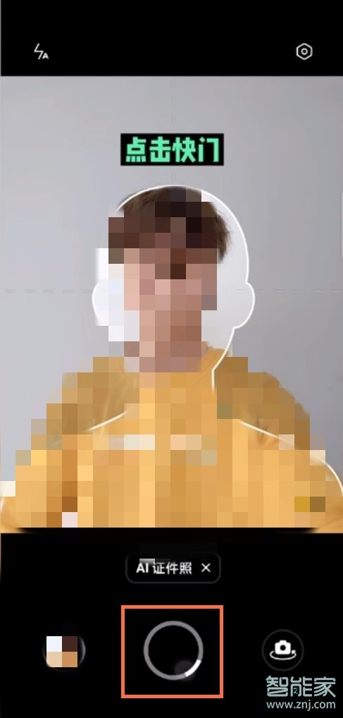 2、对准上面的人像框后,点击快门键。