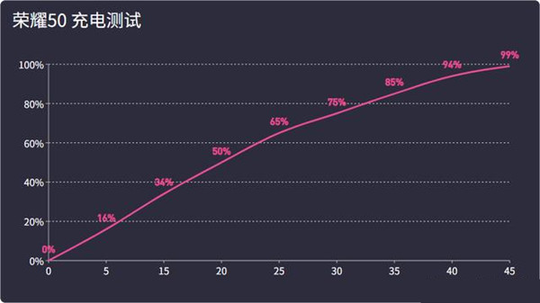 实测,荣耀50从没电关机到70%电量只需20分钟,也就是说20分钟的时间就基本可以保证一天的使用需求, 45分钟完全充满。