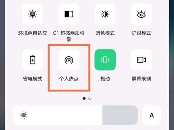 2、也可以从手机屏幕顶端下拉,滑出控制中心,点击【个人热点】图标开启。