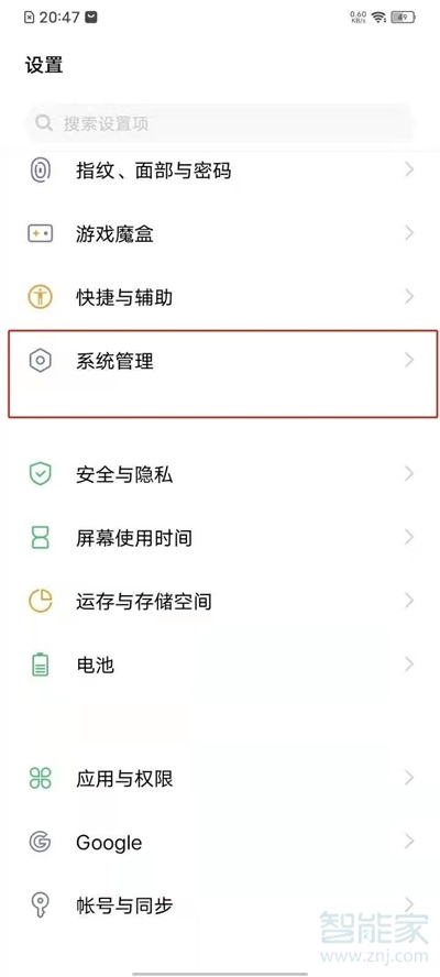 1、在手机设置菜单中点击【系统管理】。