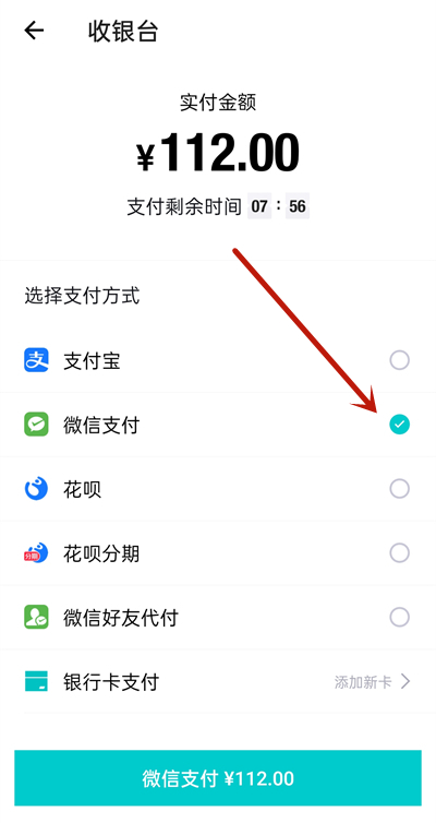 4、在支付页面选择微信支付后,点击下方的微信支付即可。