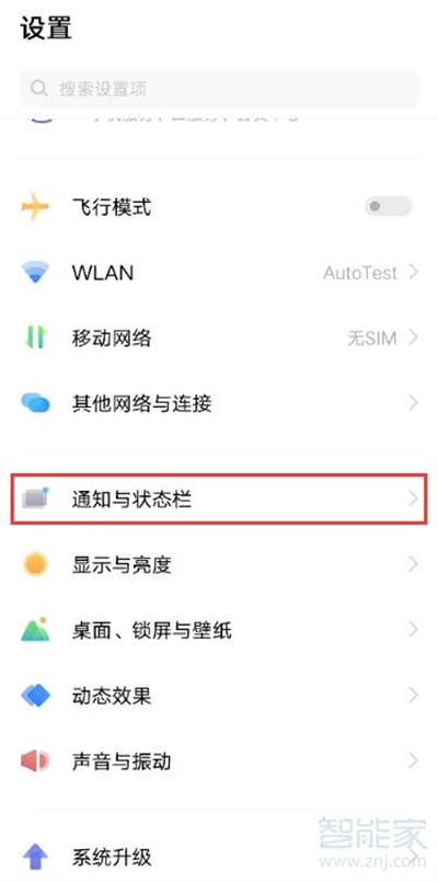 1、在手机设置菜单中点击【通知与状态栏】。