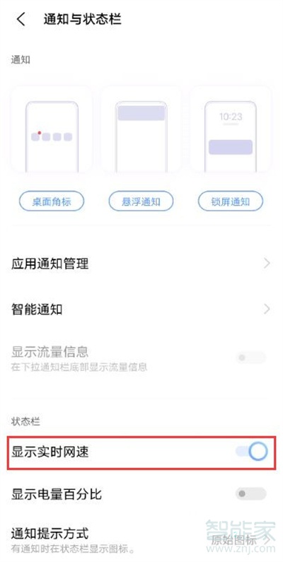 2、打开【显示实时网速】右侧的开关。