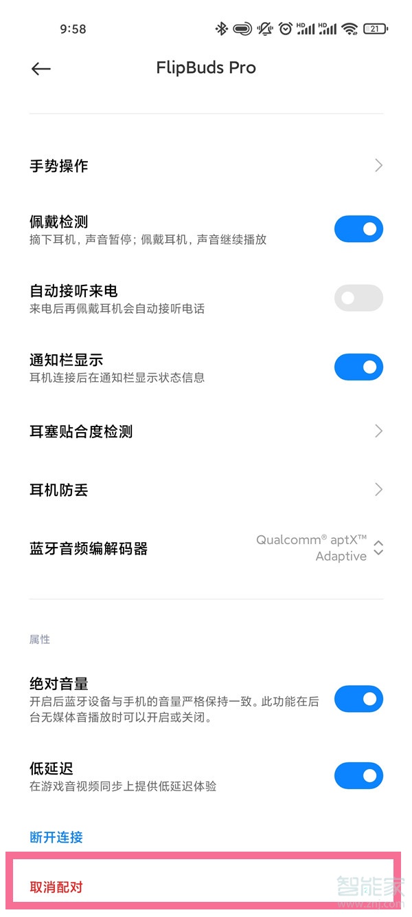 进入手机设置--蓝牙--点击蓝牙列表中连接的小米flipbuds pro,点击取消配对。