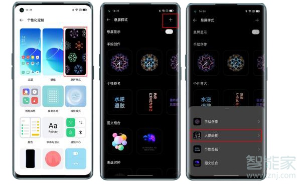 2、点击息屏样式,点击右上角【+】,点击人像绘影,选择一张照片,点击生成,点击应用即可。