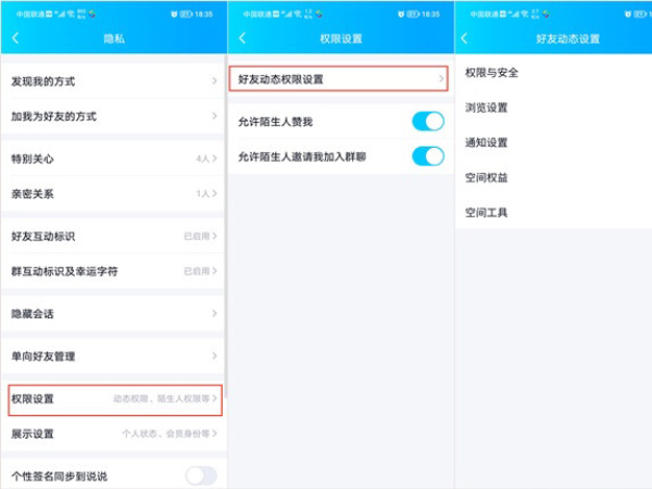 3、点击权限设置>好友动态权限设置,根据需要设置权限。