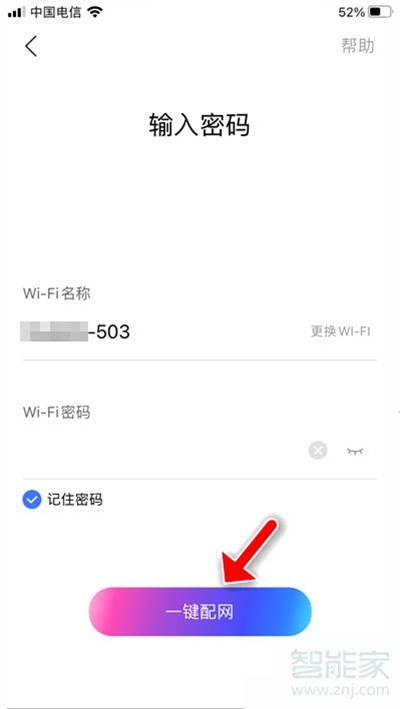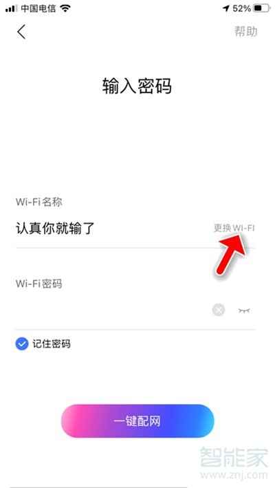 5、选择新的wifi,输入对应密码,点击【一键配网】。
