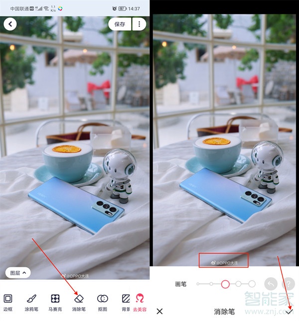 3、点击下方的消除笔,涂抹水印区域,点击【√】。
