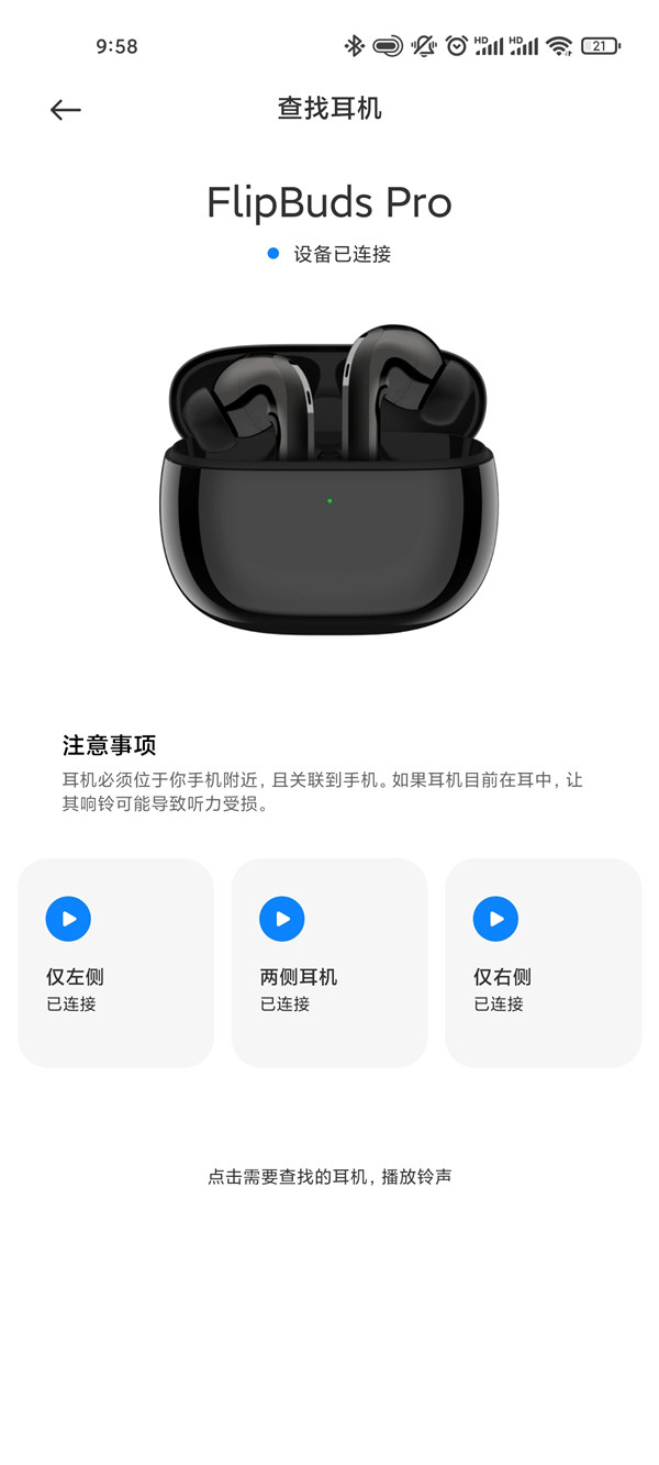 小米flipbuds pro有定位功能吗?小米flipbuds pro有定位功能,开启耳机的查找功能后,点击需要查找的耳机,耳机将播放铃声帮助用户查找。