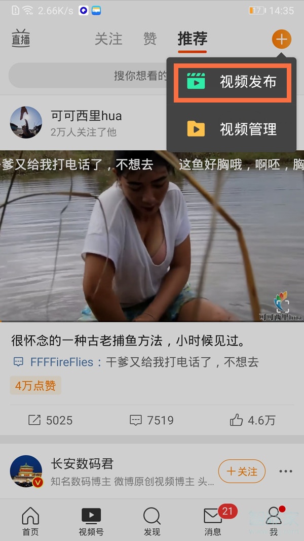 3、点击相机拍一段视频,或者从相册中选取一段视频发布即可。