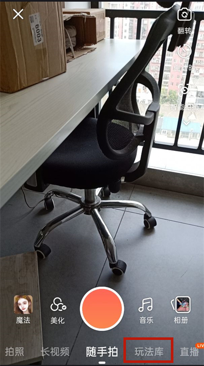 1、打开快手,点击下方拍摄按钮。