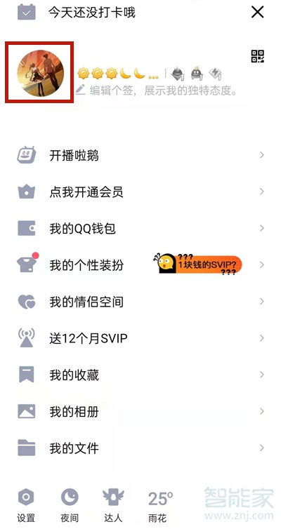 1、打开QQ,点击个人头像。