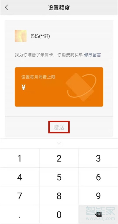 6、输入消费上限,点击赠送后输入支付密码即可。