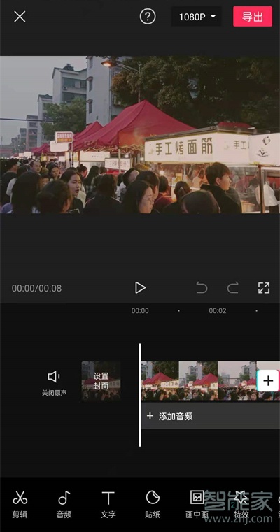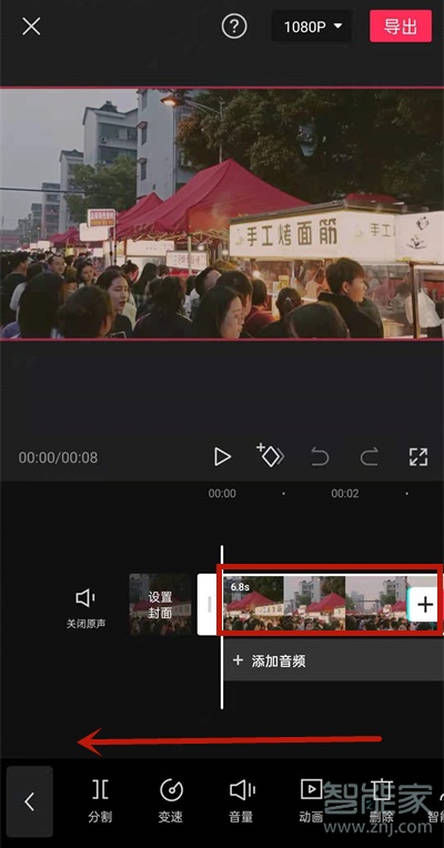 2、点击下方的视频画面后,往左拖动视频剪辑功能。