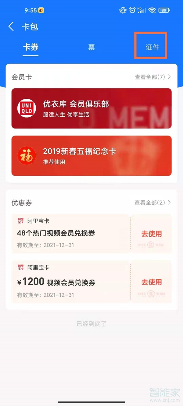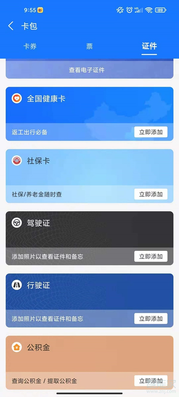 3、在证件页面即可查看电子证件,还可以添加证件。