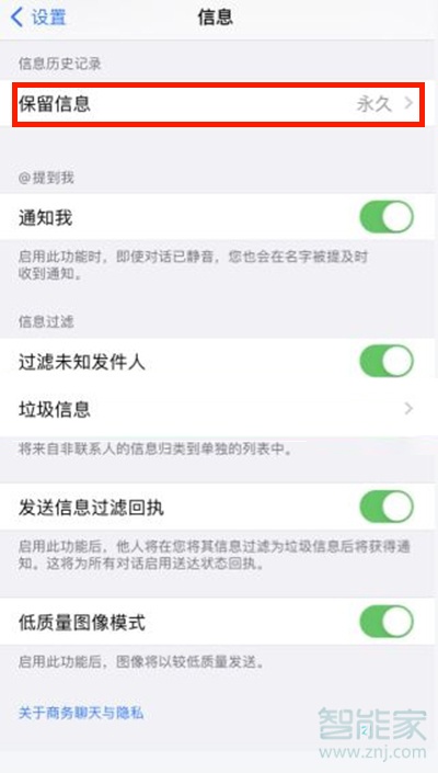 1、打开手机设置>信息>保留信息>30天,点击删除。