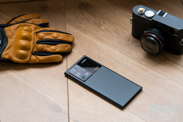 努比亚Z30 Pro 的背面采用了AG玻璃后盖,在特殊涂层下手感亲肤舒适不粘指纹。上方则是重中之重,超大的矩阵下放了3 颗6400W摄像头和一颗800万像素潜望式镜头。右侧则延伸出了一块玻璃盖板,右上角则是久违的“nubia”LOGO,整机观感沉稳低调。