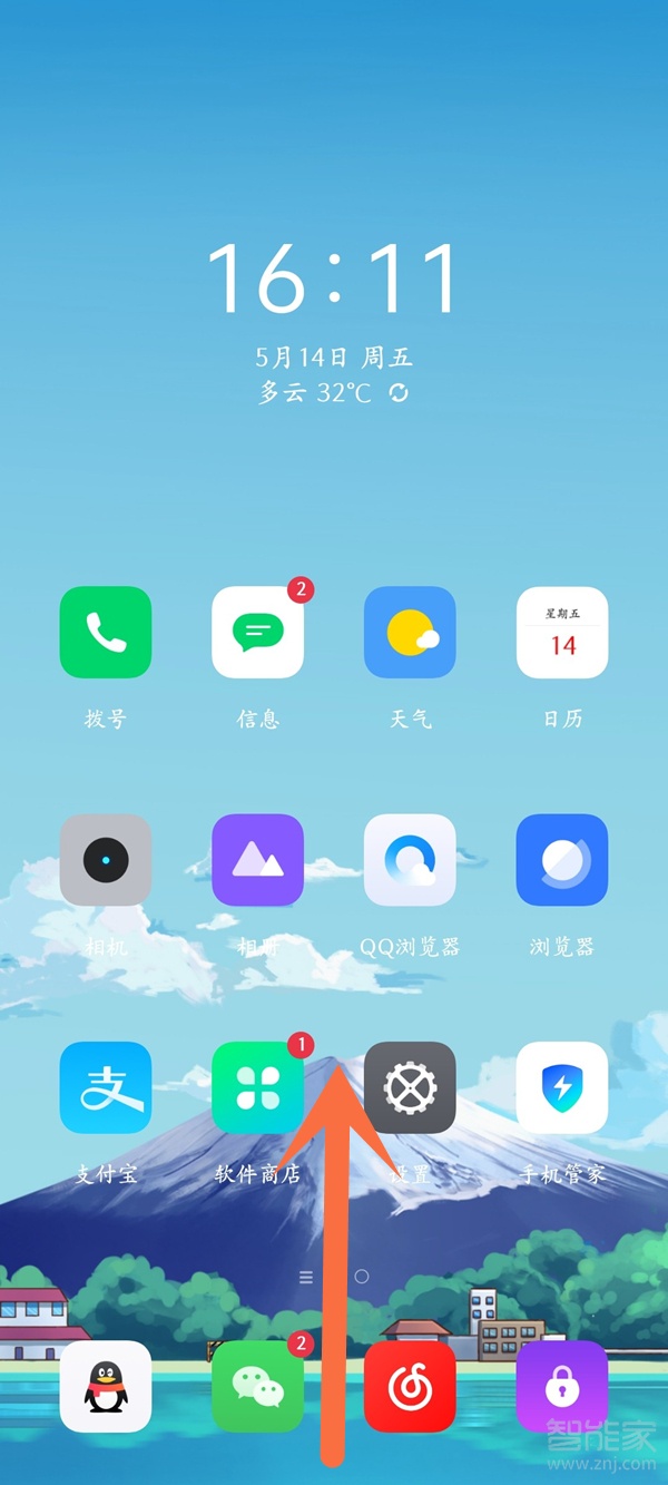1、打打开手机,从桌面底部往上滑并停顿进入后台程序。