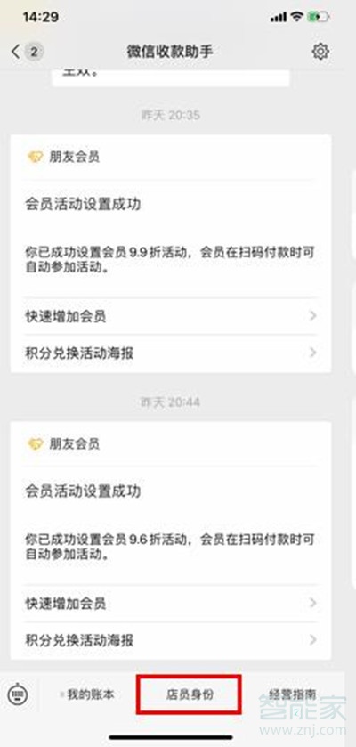 1、打开微信,点击进入微信收款助手,点击店员身份。