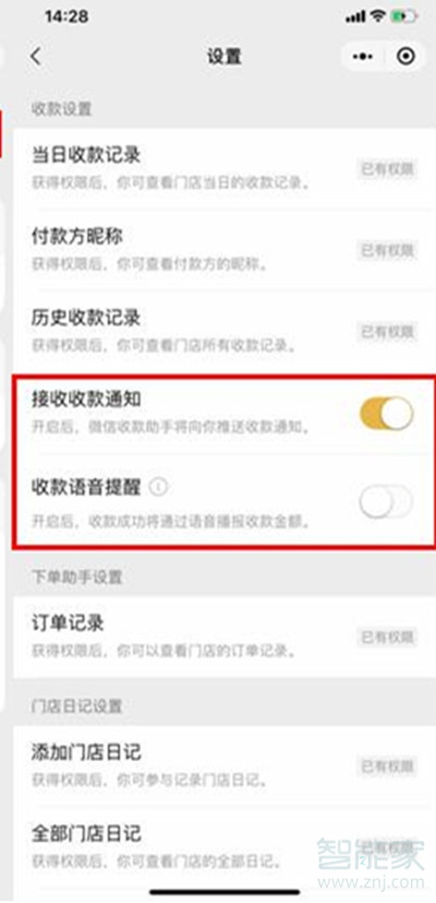 3、将【接收收款通知】和【收款语音提醒】的开关关闭即可。