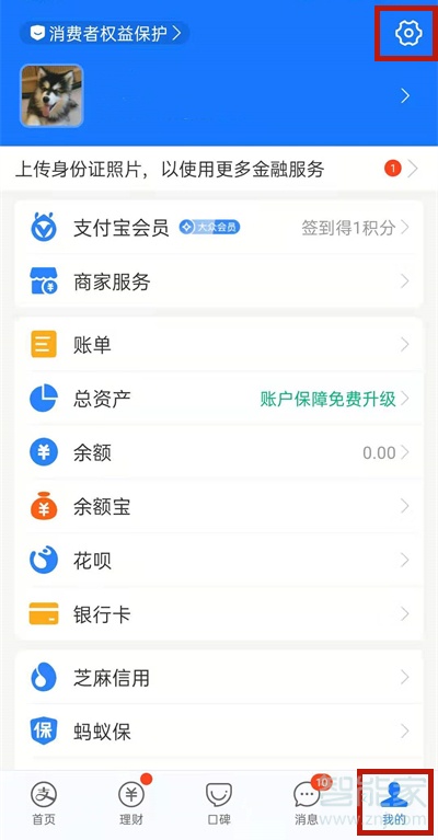 1、打开支付宝,点击右下角我的,点击设置选项。