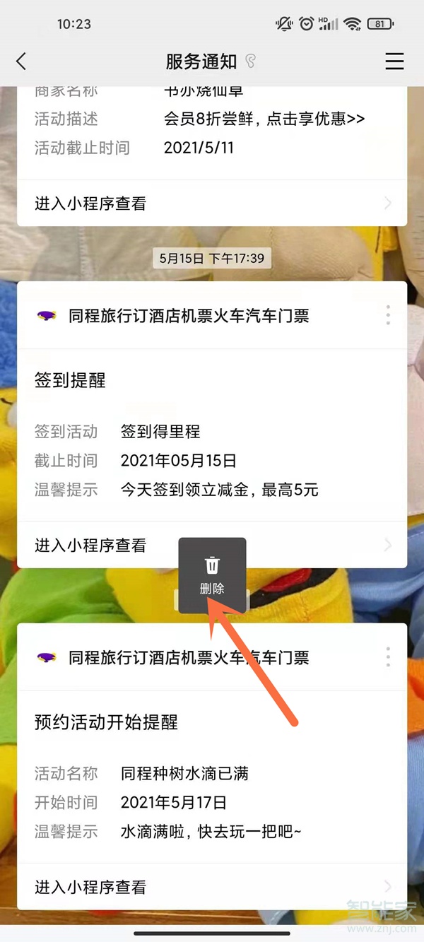 当在微信开启了签到提醒、出行提醒等等提醒功能时,都会通过服务通知来提醒大家,那微信服务通知怎么删除记录的呢,让我们一起来看看吧~